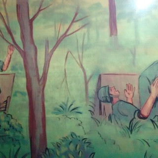 Um deles nos serviu de guia pela mata a dentro que, de forma muitas vezes emocionada, algumas vezes irônica e sempre aparentemente tudo muito realisticamente comentado. A história contada estava tão presente, tão viva no olhar do guia que, às vezes, nos sentíamos participando ao vivo de um dos muitos filmes do Rambo para o cinema.